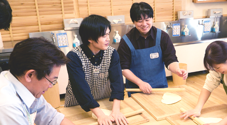 うどん職人の皆さんがとてもハキハキと明るく、優しかったです。子どもがやりにくそうな所に気づいて、さっと横から手伝ってくださっていました。こねる時や切る時に、褒め言葉をかけてくださっていたのも、子どものやる気につながっていました。クイズも面白く、息子は一生懸命考えていました。
