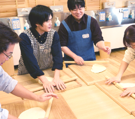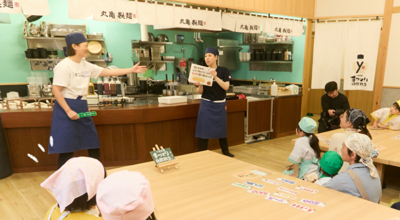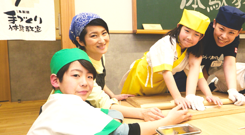 うどん職人の皆さんがとてもハキハキと明るく、優しかったです。子どもがやりにくそうな所に気づいて、さっと横から手伝ってくださっていました。こねる時や切る時に、褒め言葉をかけてくださっていたのも、子どものやる気につながっていました。クイズも面白く、息子は一生懸命考えていました。
